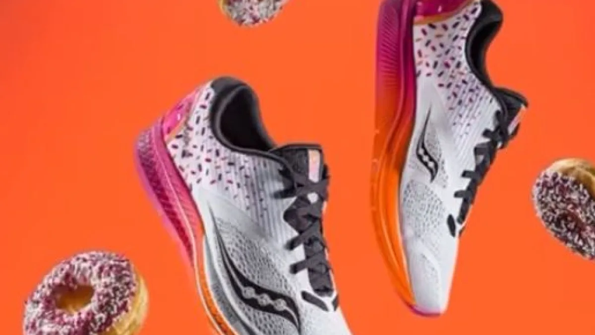The annual boston marathon is just two weeks away and in honor of the upcoming event, athletic shoe brand Saucony announced its rather surprising collaboration with Dunkin' Donuts. Saucony, which was founded in Massachusetts 120 years ago, celebrated its anniversary by teaming up with another iconic brand, this time in the food industry. Dunkin' Donuts, which was originally founded in Quincy, Massachusetts, was the inspiration behind the new athletic shoe collaboration.