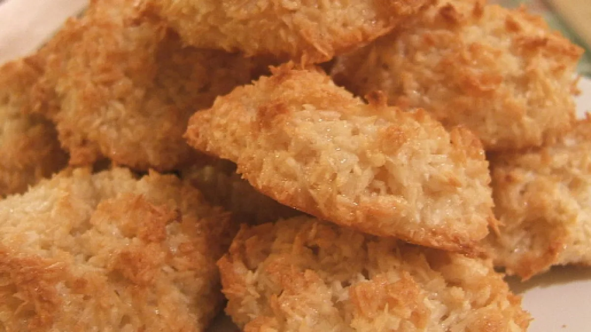 Macaroons consist of a formula of shredded coconut, egg whites, vanilla, and sugar (and sometimes other ingredients for variations much like the following recipe). In the past, the formula would start with a meringue formed by whipping the egg whites until they formed soft peaks, then gradually adding the sugar until stiff peaks form.