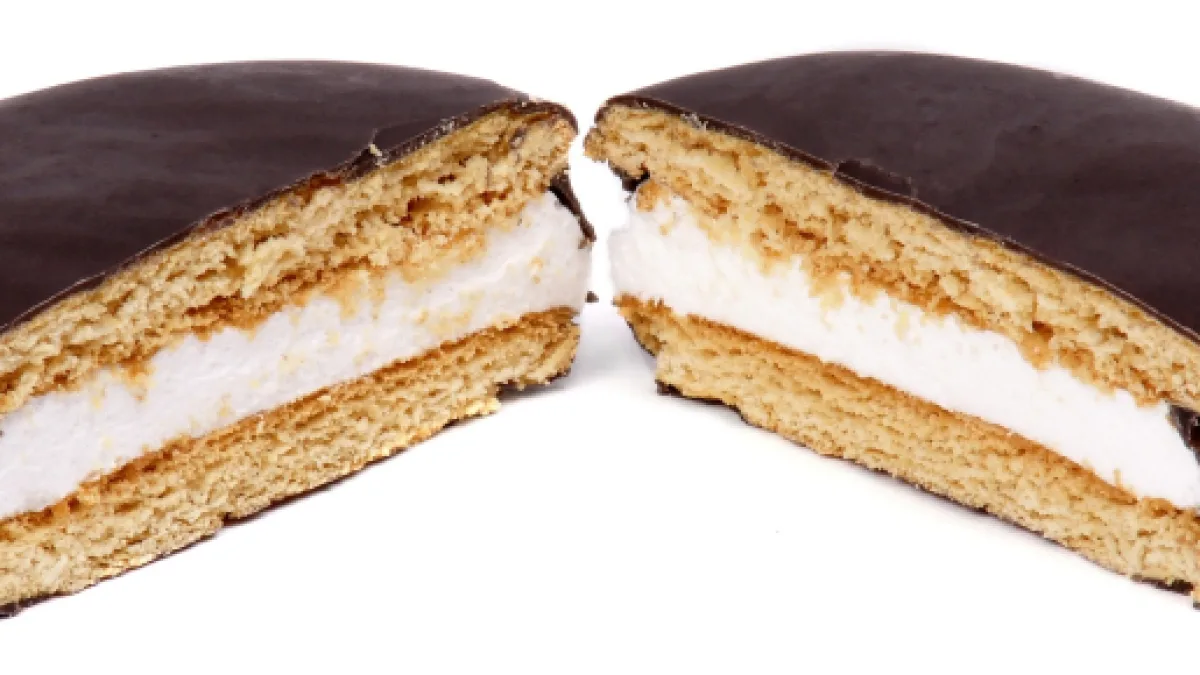 - Remove the Creme Chantilly from the refrigerator and unseal. Plight the Creme on top of the lower halved cake and evenly smooth down with a spatula. Return the top half of the cake over the lower half to sandwich the cakes between the Creme Chantilly.