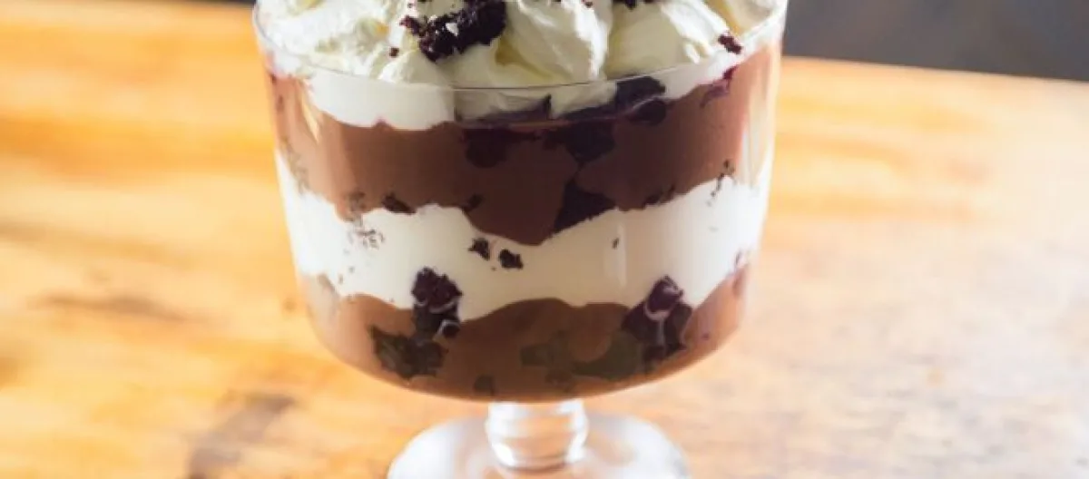- Repeat in this order for six layers in total per glass. Top each trifle with one of the retained cherries. Alternatively, you can use powdered cocoa as a garnish. Serve.