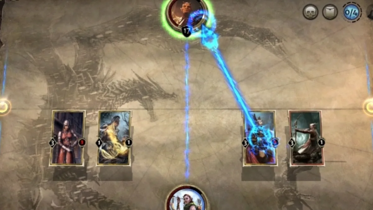 You start with 1/1 and it builds up in increments of one every turn. Cards need magicka to be summoned, ranging from zero-cost cards to 7-cost cards. Some cards can boost your maximum magicka, so you can summon more powerful creatures earlier.