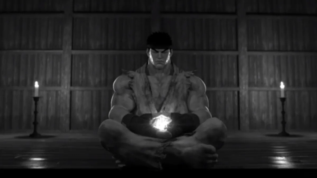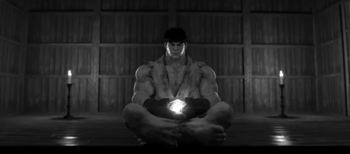 The trailer starts with Ryu meditating inside a temple as the scenery shifts to a giant waterfall. The latter is preparing to fight his inner demons in the form of the Satsui No Hado, and glowing energy slowly approaches him behind the waterfall. The energy came from Akuma, and the two begin to fight one another.