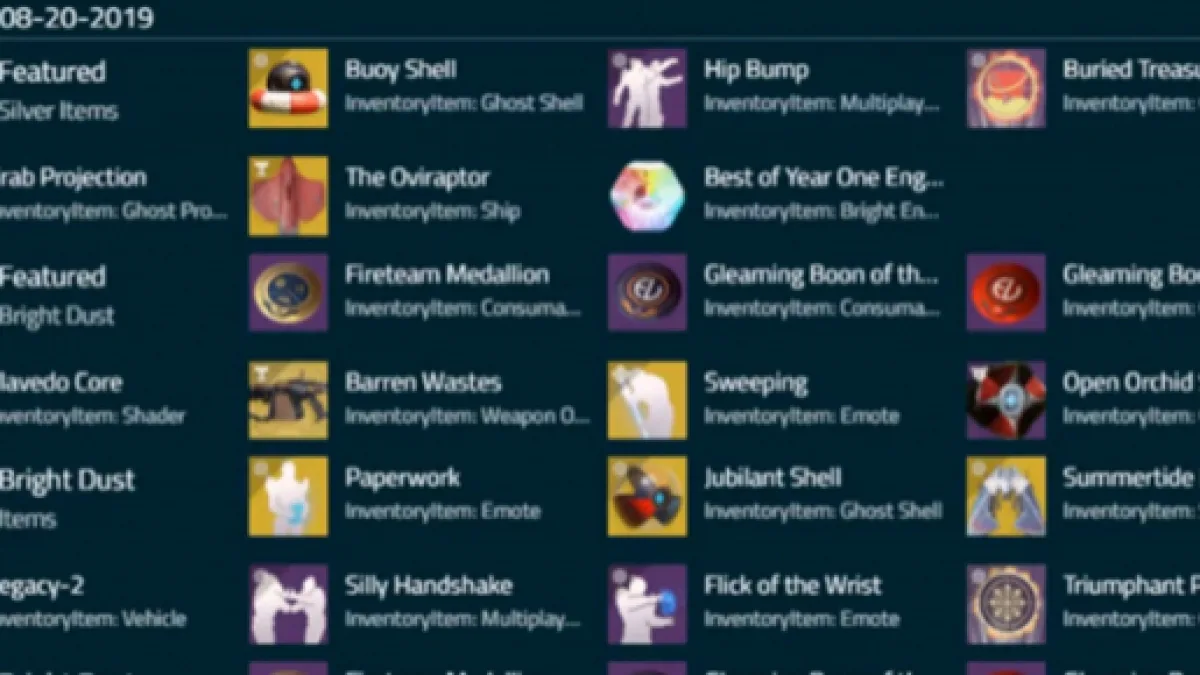 According to the data miner, Tess will be offering six slots of items each week that she sells for Silver. He further explained that those will be set as “categories” on the vendor alongside the labels “categories.featured.weekly.slot#” with the “#” symbol to be replaced with numbers between zero to five. The Best of Year One Engram will always be designated on the sixth slot while the remaining five slots will be Eververse items.
