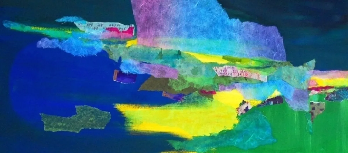 I started to select colors and to tear papers, and to orchestrate them on canvas. As I attached torn designed papers and put colors on the canvas, I found this a means to go back to those sad or beautiful moments and to filter, transfer and purify significant memories.