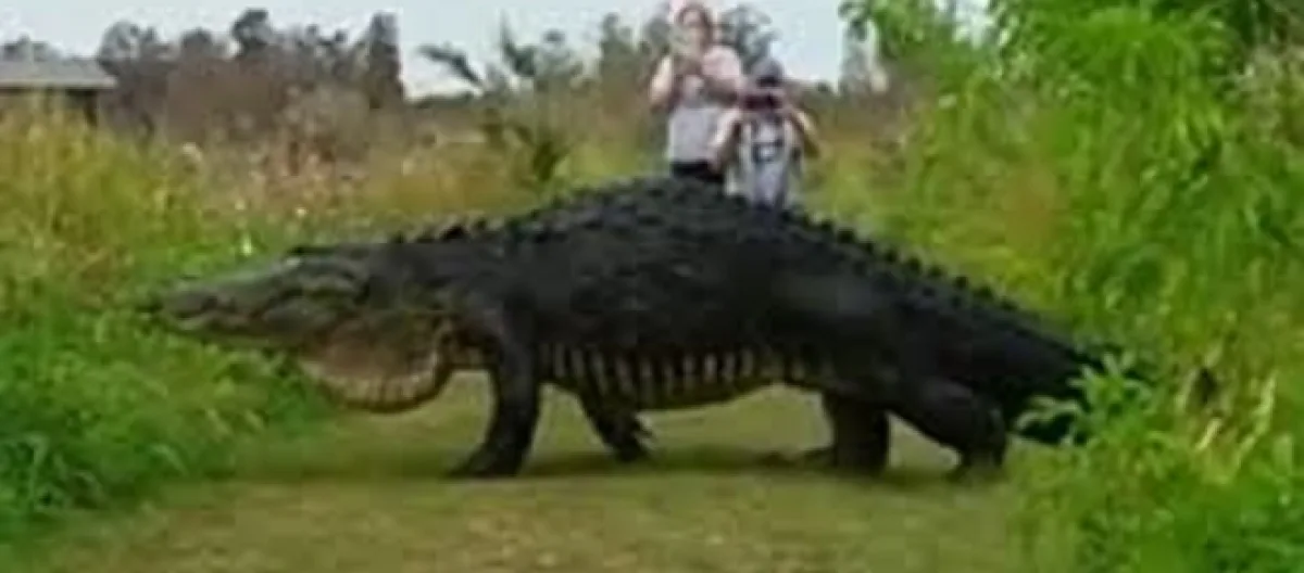 Holy alligator shoes and purses! No, this is not a scene from a new sequel to "Jurassic Park" nor is it a promotional snapshot for another "Lake Placid" film. Recently, visitors at the Polk County Circle B Bar Reserve in Lakeland, Florida were stunned when an alligator estimated to be between 14 and 16 feet in length casually crossed their path. The scary looking behemoth seemed as though he couldn't care less as tourists gasped at the sight while calmly taking photos.