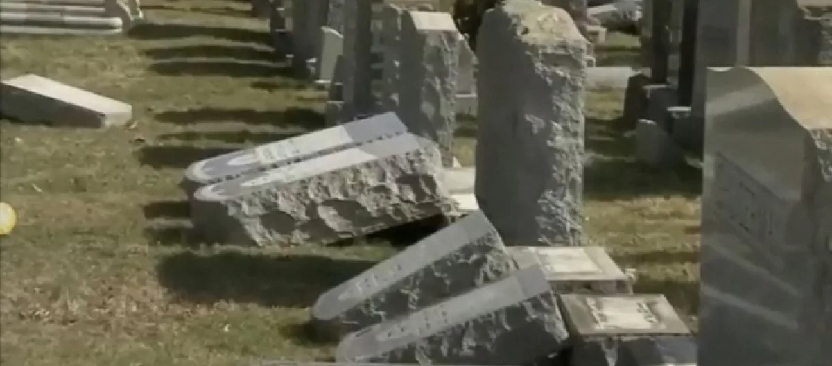According to Rabbi Shawn Zevit, when he and a member of his congregation visited the Mt. Carmel cemetery, they found “a few hundred” headstones had been vandalized. Zevit said the sheer scale of the incident is incredible. Twitter users are quoting the Rabbi as saying anything between 350 and 500 tombstones had been knocked over and damaged.