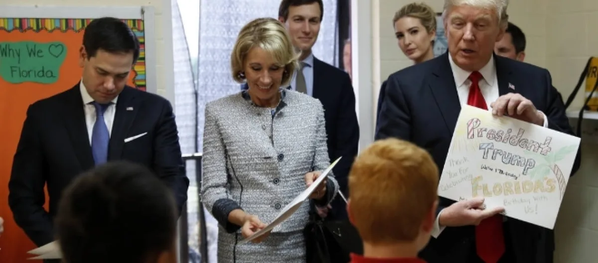 Donald Trump spent most of his Friday afternoon along with Betsy DeVos, Ivanka Trump, Jared Kushner, his son-in-law and Marco Rubio.