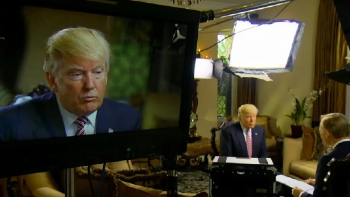 As the interview heated up, Trump told Dickerson "That's enough, Thank You" and went to sit at his desk as shown in this video. What appeared to set off the volatile Trump was the mention of the words "fake news."