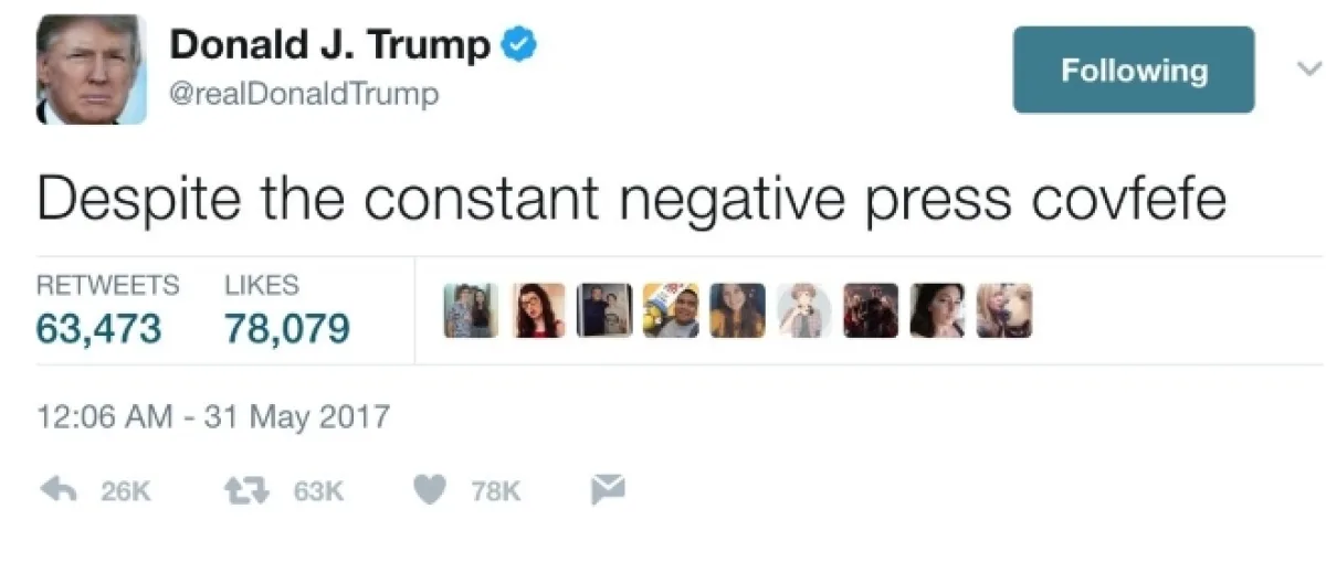 Donald Trump's original tweet, which he has since deleted, reads "Despite the constant negative press covfefe," and the internet couldn't get enough. Memes, conspiracies, and tweets regarding the typo exploded, which some even claimed was a unifying force.