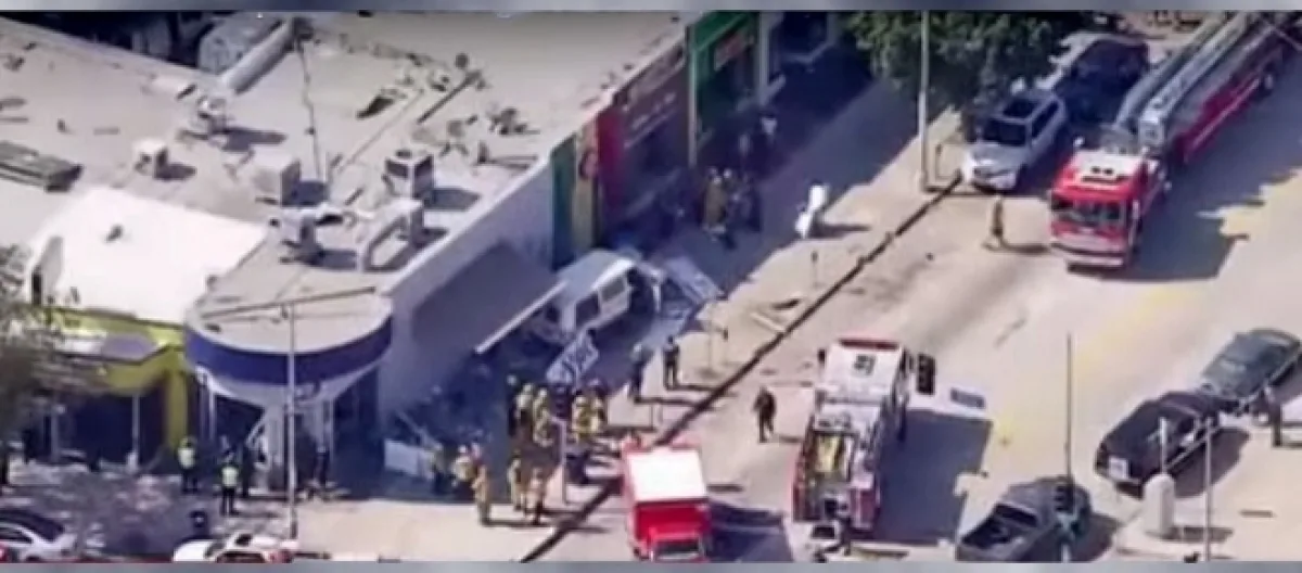 After a Ford van ran a Red Light on Sunday afternoon in Los Angeles, it struck another vehicle before plowing into tables outside the Fish Shop restaurant in Mid-Wilshire. At least nine people were injured in the incident.