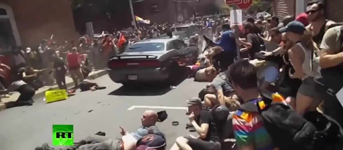 One killed, 20 injured as a Dodge Challenger plows into counter-protesters