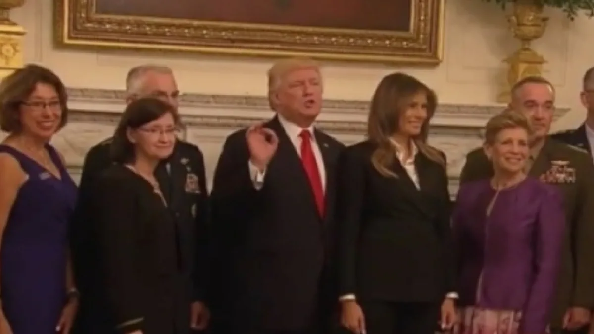 On Thursday, Donald Trump met with military leaders at the White House. During the photo-op, the president made controversial remarks that didn't go over well on social media.