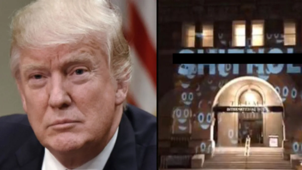 According to The Hill on Saturday night, a video was posted to the streaming service Periscope on Saturday night that trolled the president. Unknown pranksters decided to project the word "sh*thole" onto Donald Trump's hotel in Washington, D.C. as way to push back against his remarks. In addition, several other phrases were projected, including "Pay Trump Bribes Here," "Emoluments Welcome," and "We Are All Responsible To Stand Up And End White Supremacy."