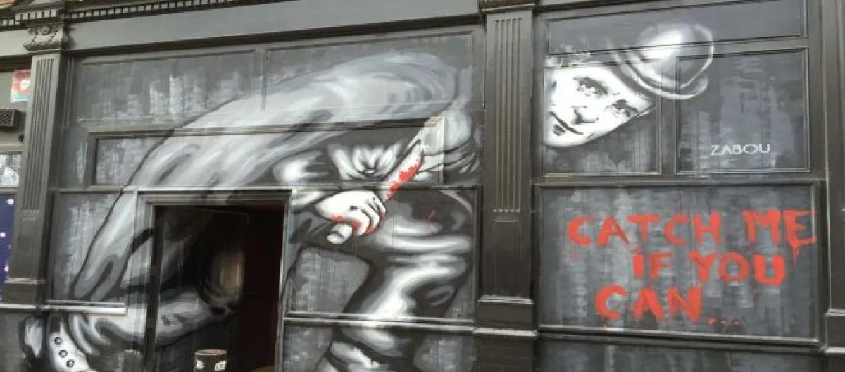Imagine being known for your deeds, but then history doesn't call you by name. Identified only as Jack the Ripper, he was the serial killer in 19th century England who brutally mutilated and murdered five women. Without fanfare or apparent reason, Street artist Zabou resurrected Britain’s bad dream with a mural painted on an outside wall near the crime scene showing "Jack” dripping in blood.