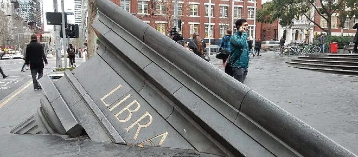 What you see on a downtown city street is a half-buried section of the State Library of Victoria. Reports say it symbolizes the downfall of civilization. But you don’t need a report to tell you that.