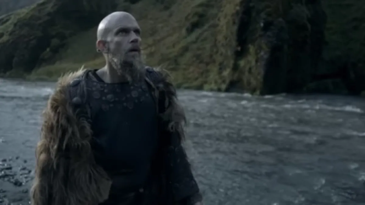 In the said scene, Floki is alone after he lost his wife during the invasion of England. He walks towards the waterfalls as the water flows in reverse. He slowly kneels down while the figure approaches him. The scene is similar to Ragnar’s (Travis Fimmel) vision of Valhalla in the previous season.