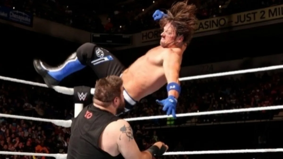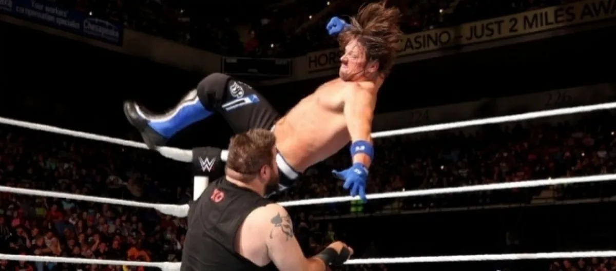 Owens would deliver his own huge move off the corner, hitting a big suplex for a two count. Moments later, the two fought out onto the apron with Styles suplexing Owens on the ring apron. Kevin collected himself and was able to shove AJ into the timekeeper's area. AJ would regain momentum and hit a flying forearm from the barricade near the timekeeper's area.