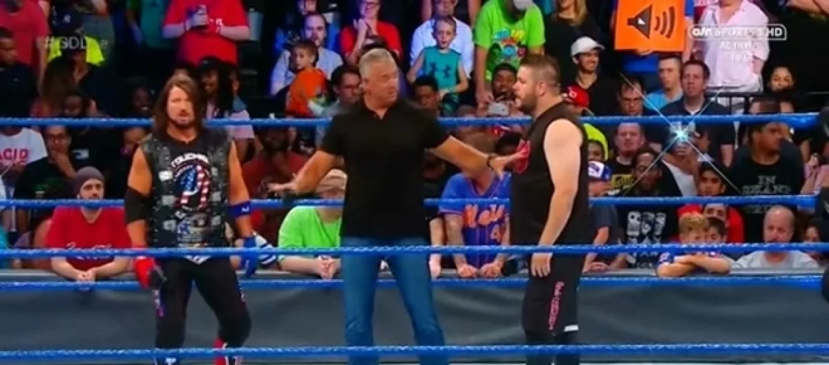 AJ Styles kicked off this week's episode of "SmackDown Live" and made a U.S. Open challenge for whoever is interested in fighting for the title. Kevin Owens again answered the challenge and complained about the unfair results from "SummerSlam" due to Shane McMahon being the referee. Owens came to the ring continuously whining and complaining about the loss.