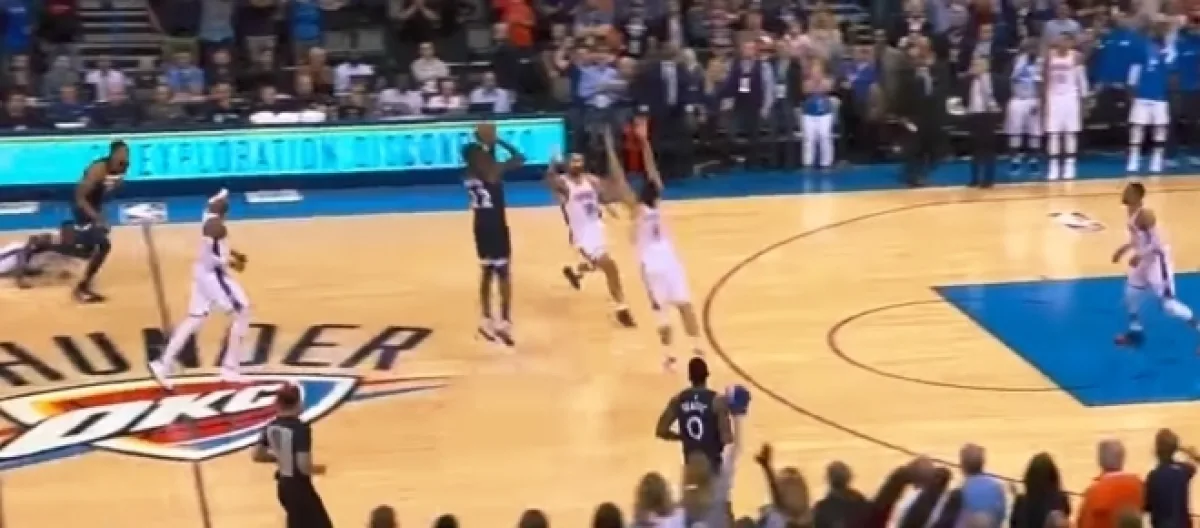 With less than ten seconds left on the clock, the Thunder trailed the Timberwolves 112-110. Paul George sent the inbound pass to Russell Westbrook, who quickly found Carmelo Anthony waiting on the wing. With no hesitation, the former New York Knicks star hoisted up a three-pointer, which found nothing but net, to the jubilation of the home crowd. It seemed like the Thunder would survive - until Wiggins entered the picture.