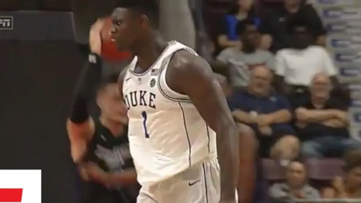 Duke freshman star Zion Williamson suffered a freak knee injury after his shoe exploded in the first 36 seconds of his game against the University of North Carolina. He ended up leaving the game with a "knee sprain." Duke later announced that Williamson would not be returning to the game.