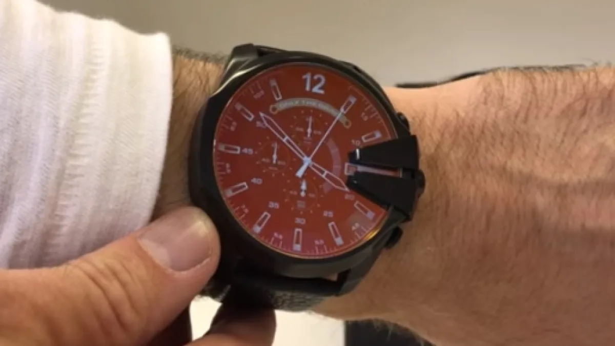 While most Android Wear smartwatches have large bezels and thick bodies, the On Full Guard deviates a little from this design. The Diesel wearable may not necessarily be considered a small watch, but its shape and size look sensible on the wrist. The edges around the display have a subtle slope that integrates the screen into the body. There are four side pieces to the screen including two buttons and two fake screw heads. This same design matches that of Diesel's analog watches.