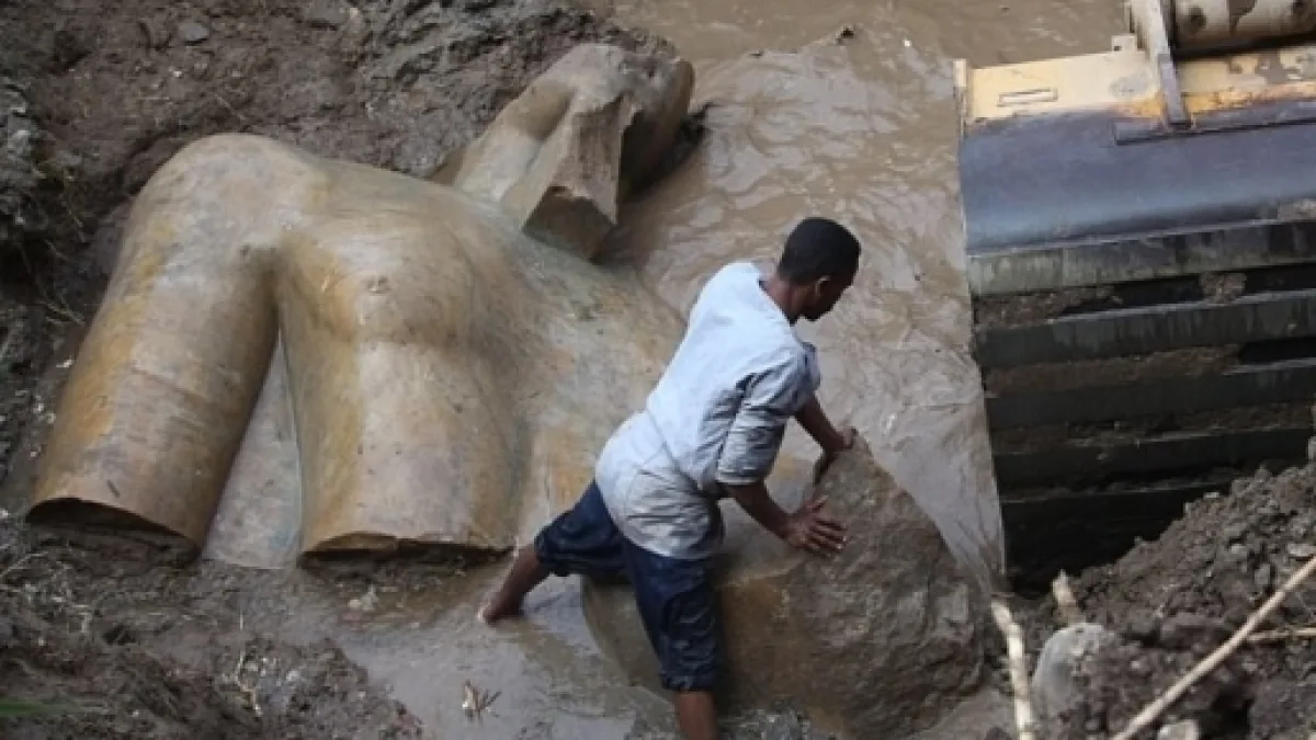 A team of German and Egyptian Archaeologists made a surprising discovery in the slums of Egypt's capital city of Cairo, where they discovered a massive statue that they believe is of the ancient pharaoh Ramses Ii. The head of the statue got pulled from the mud and groundwater where it was found a few days ago by a bulldozer, with the three-ton (2,721 kilogram) torso having been pulled out yesterday.