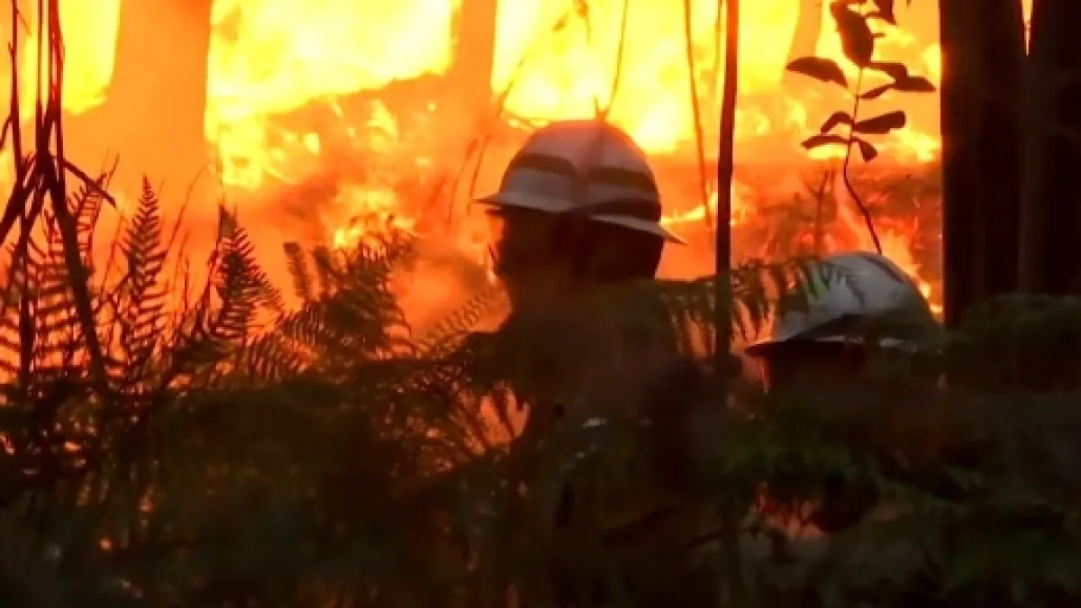 Forest fire difficult to fight due to intense flames