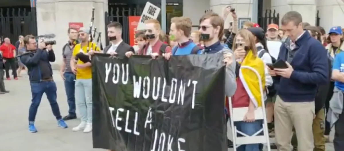 Some of the group organizers chose to march through the British capital with tape over their mouths and a sign saying "You wouldn’t tell a joke". They were followed by a diverse group of people who differed in race, economic status, gender, sexual orientation, age, political affiliation, and nationality. They achieved a peaceful display complete with speeches in their aim to show the government that their citizens do not support these hate speech laws.