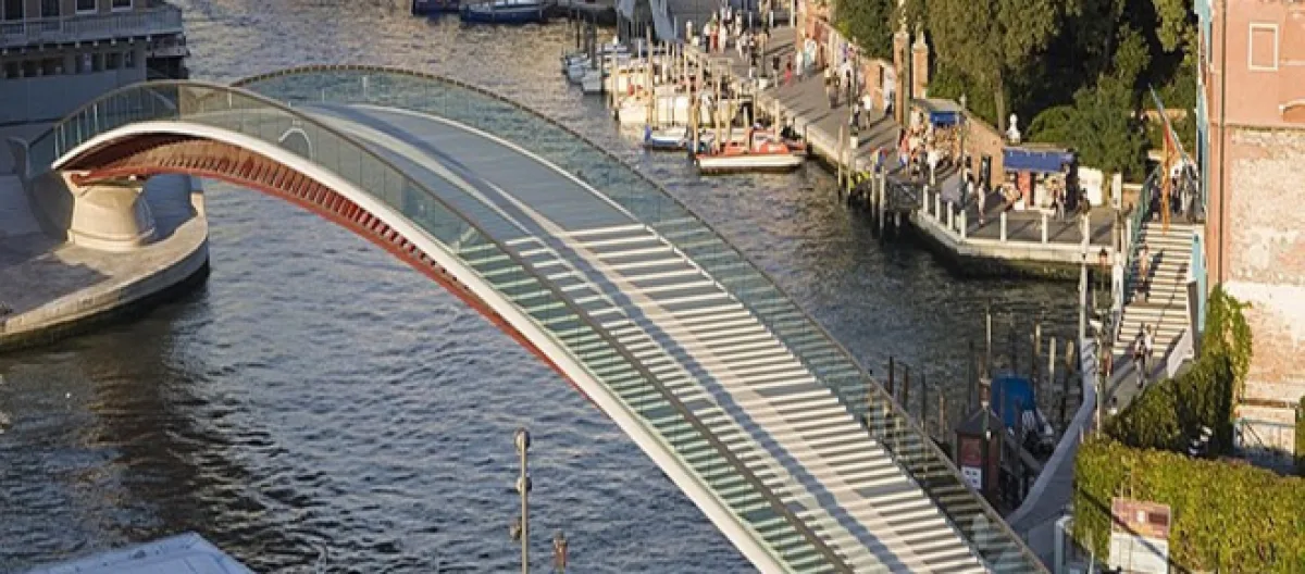 If you think the bridge to nowhere - northern California's famous span begun in 1938 and abandoned due to flooding - is the ultimate washout, consider a footbridge over the Grand Canal in Venice that isn't good to walk on. This is especially concerning to the thousands of tourists coming from the nearby train station each day and rolling their wheeled baggage across the expanse.