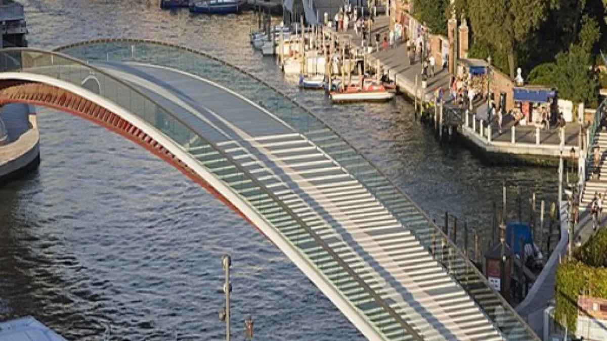 The BBC reports that the "gross negligence" alleged by a court in Venice takes in the choice of material for the steps leading to the bridge, which are made of tempered glass. The problem with glass is said to erode too rapidly. What's more, the steps rule out wheelchairs users. So, who's bright idea was it to build such a bridge? An architect who is known for complaints about his work in other cities - Santiago Calatrava - a master builder (and engineer) given to bold, dramatic design and details be damned.